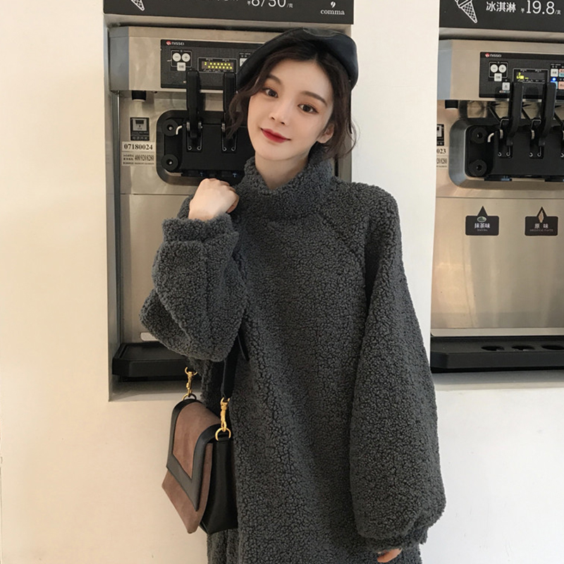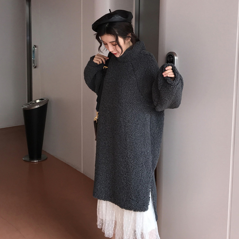/ 洋氣套裝女秋冬2018新款時尚氣質網紗裙寬松高領中長款開叉連衣裙