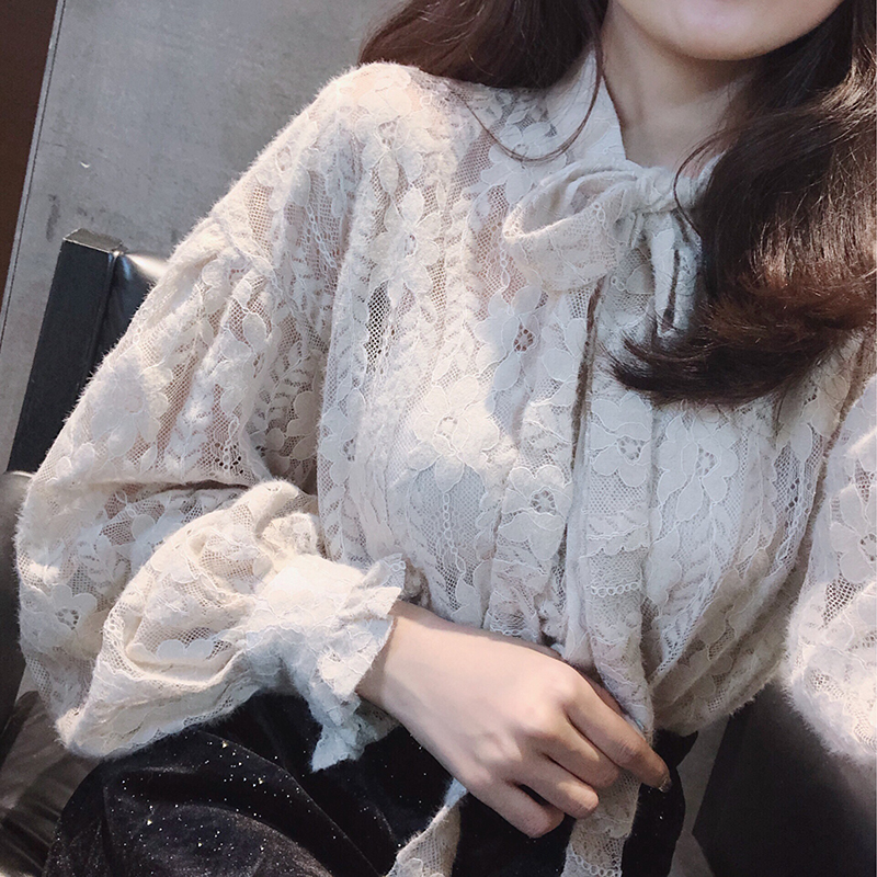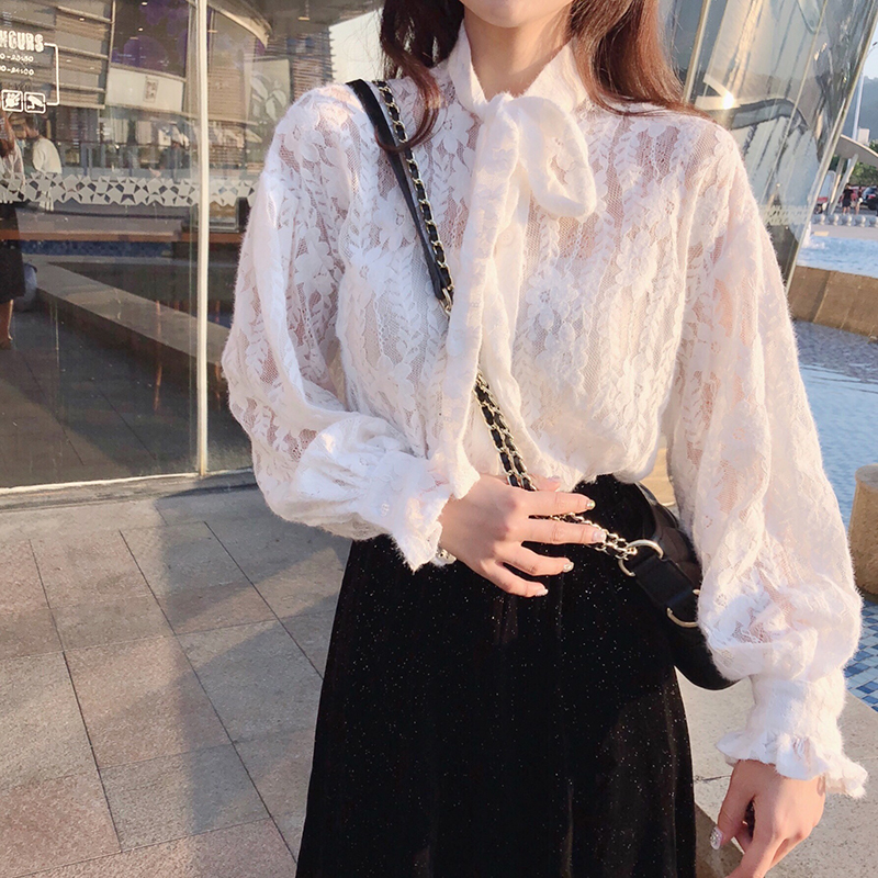 秋裝2018新款女裝韓國氣質寬松顯瘦系帶蝴蝶結襯衫女純色百搭襯衣