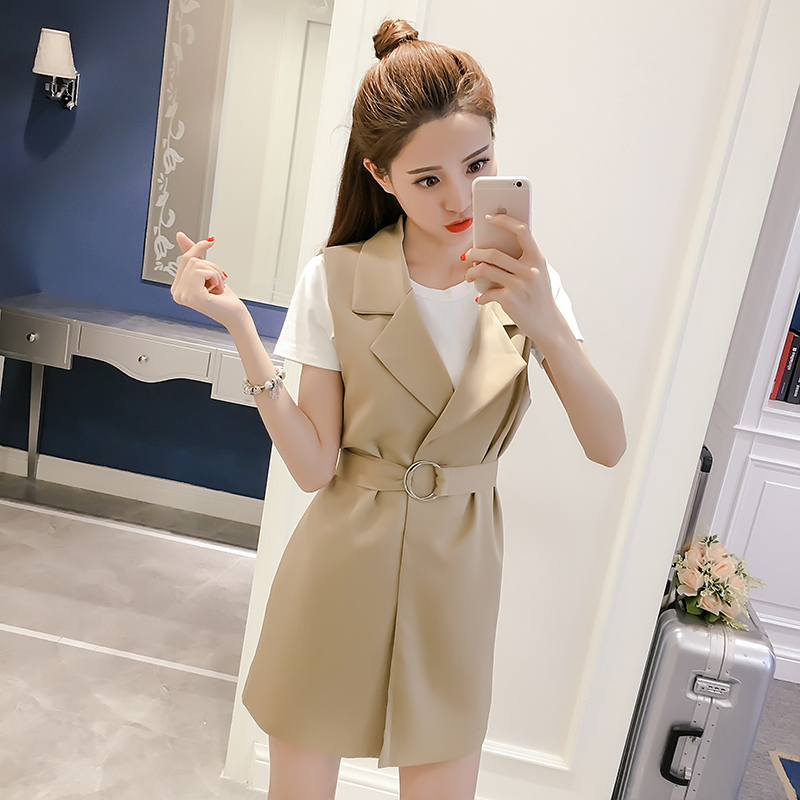 整體版型簡單大方,無袖款式的西裝馬甲,