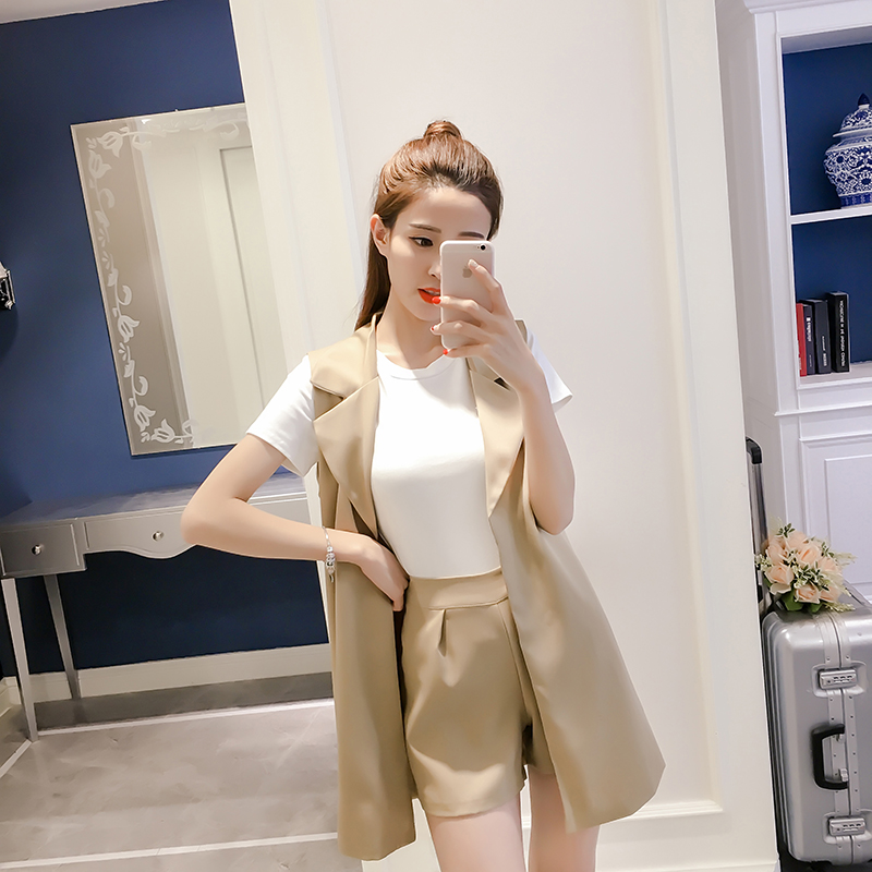 增添了幾分時髦的休閑范~配套的同色系短褲,
