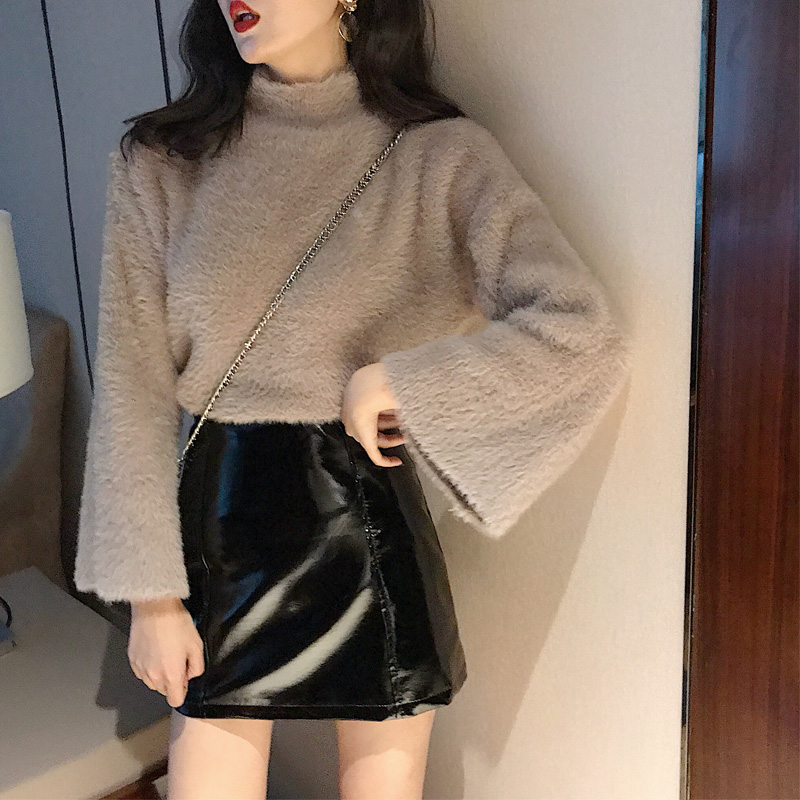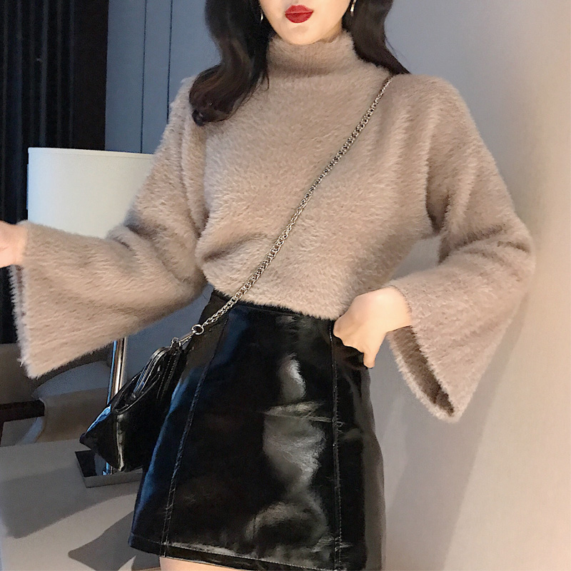 / 港味慵懶風毛衣女半高領寬松顯瘦復古chic新款針織衫喇叭袖上衣潮