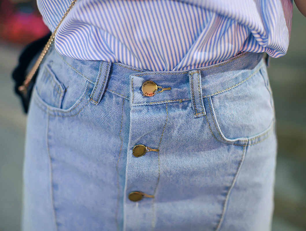 斜拼接牛仔415 淺蘭