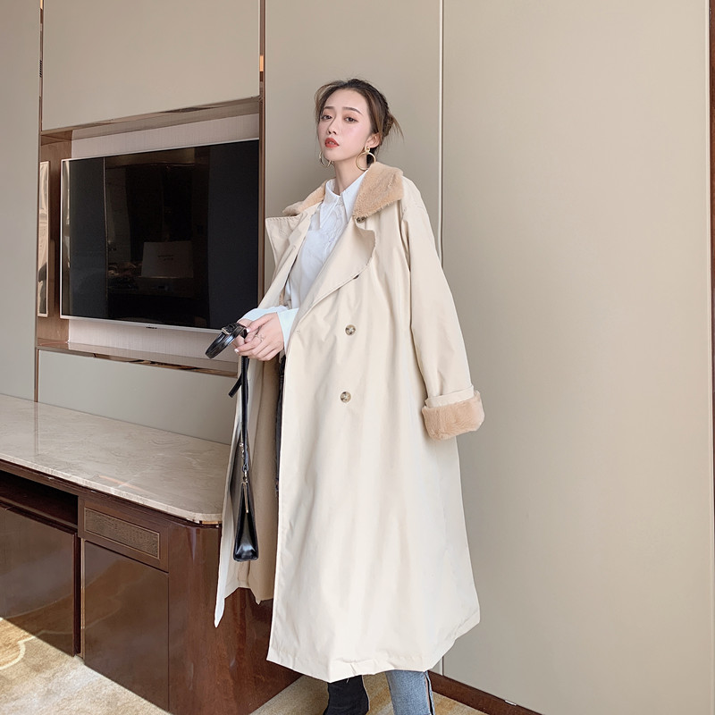 2018小香風冬季新款寬松中長款加厚chic大衣百搭系帶風衣外套女裝