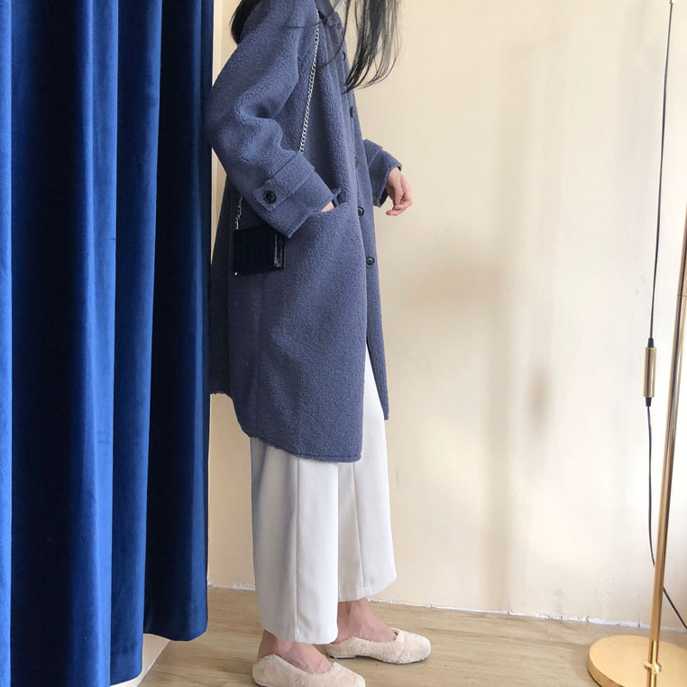 復古溫柔慵懶風隨意暖色系百搭寬松中長款毛呢外套女韓版呢子大衣