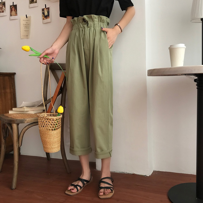 / 休閑褲女夏2018新款韓版女裝寬松學生百搭花苞高腰顯瘦闊腿九分褲
