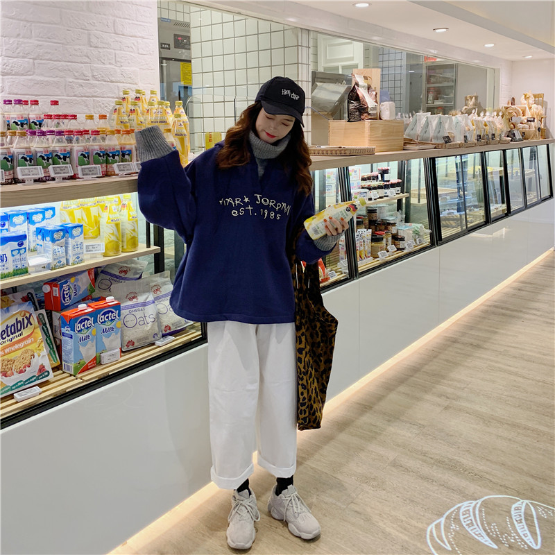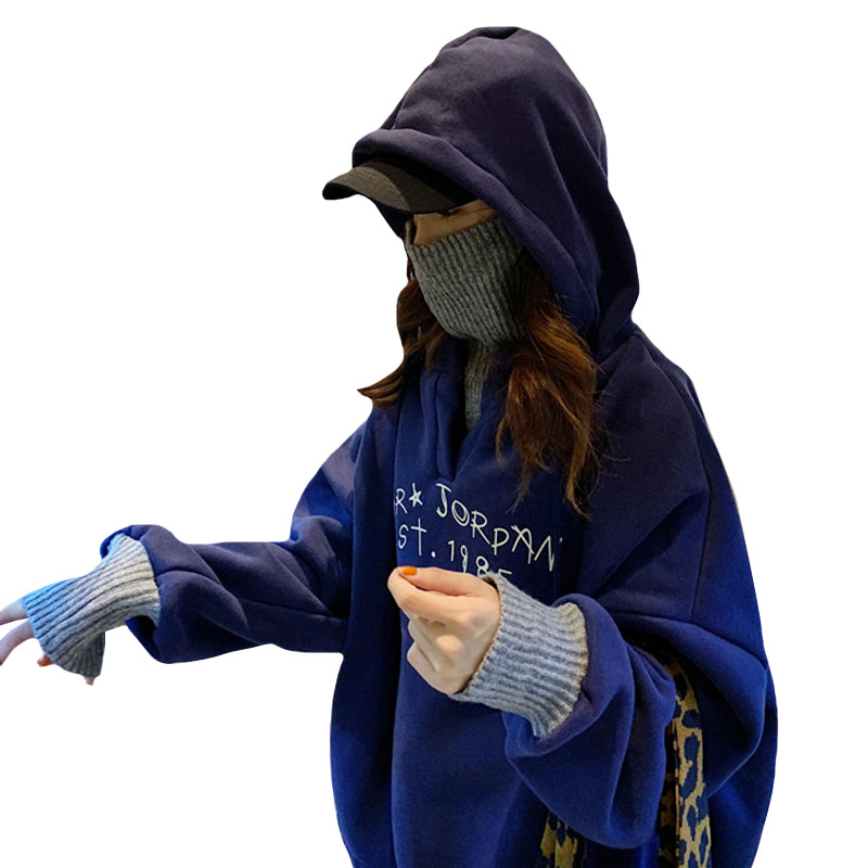 / 秋冬女裝韓版寬松原宿風字母撞色拼接高領連帽套頭衛衣上衣外套女