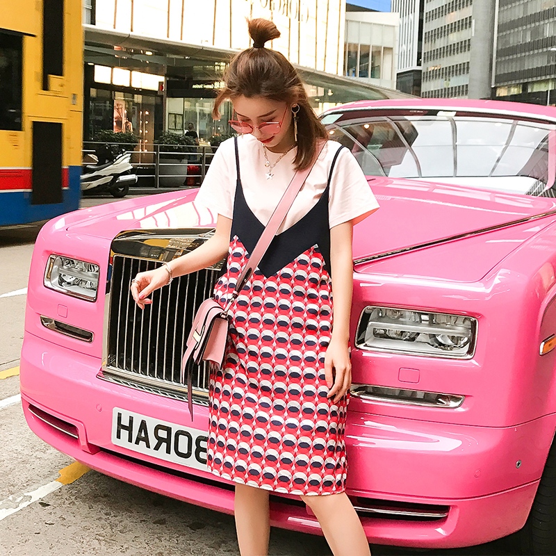 / 春裝夏裝新款寬松學生連衣裙兩件套女韓版時尚氣質性感吊帶裙套裝