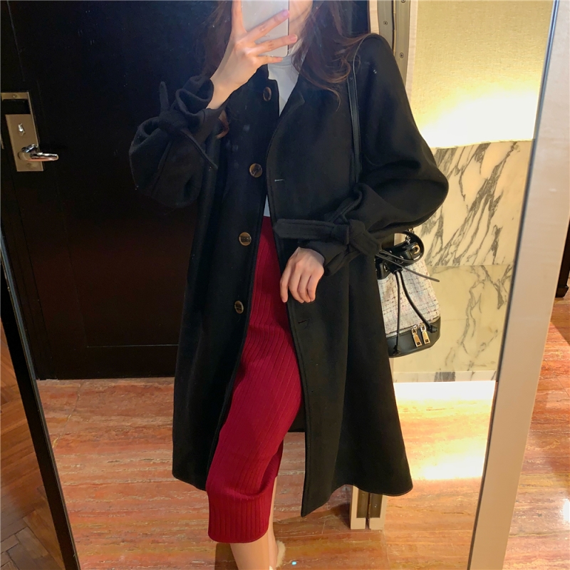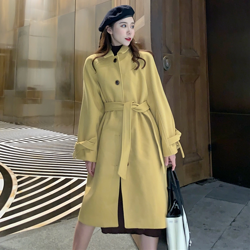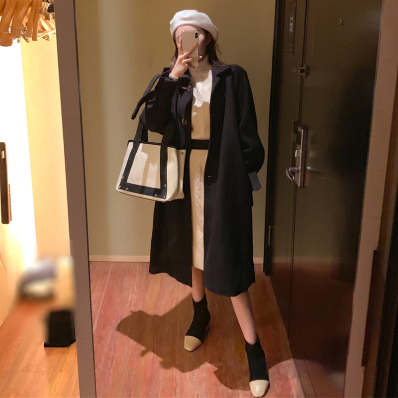 / 秋冬季中長款風衣新款chic港味復古百搭修身單排扣長袖開衫外套女
