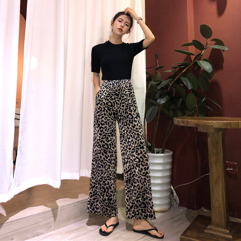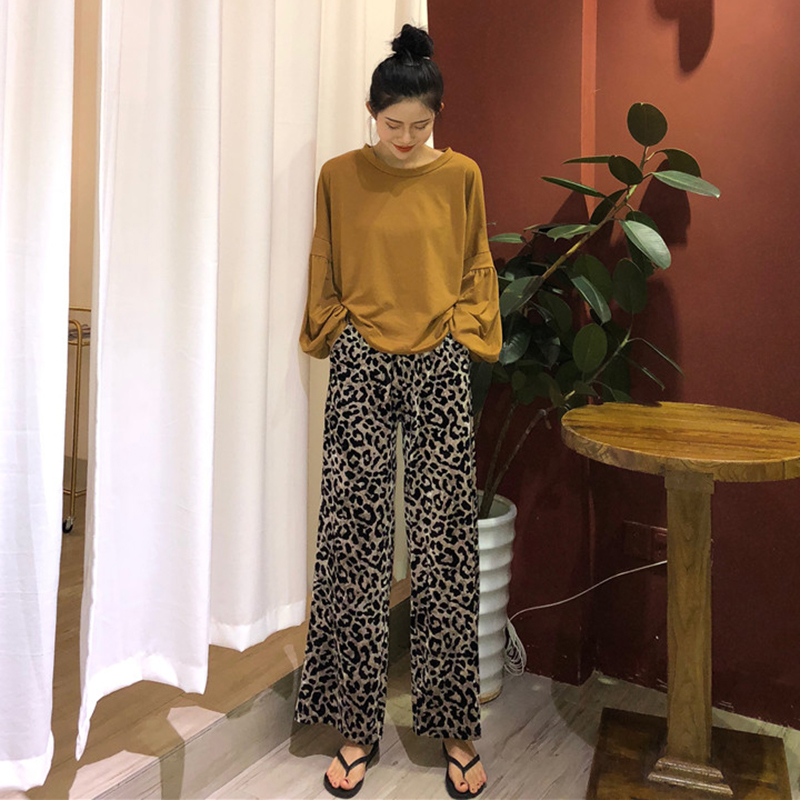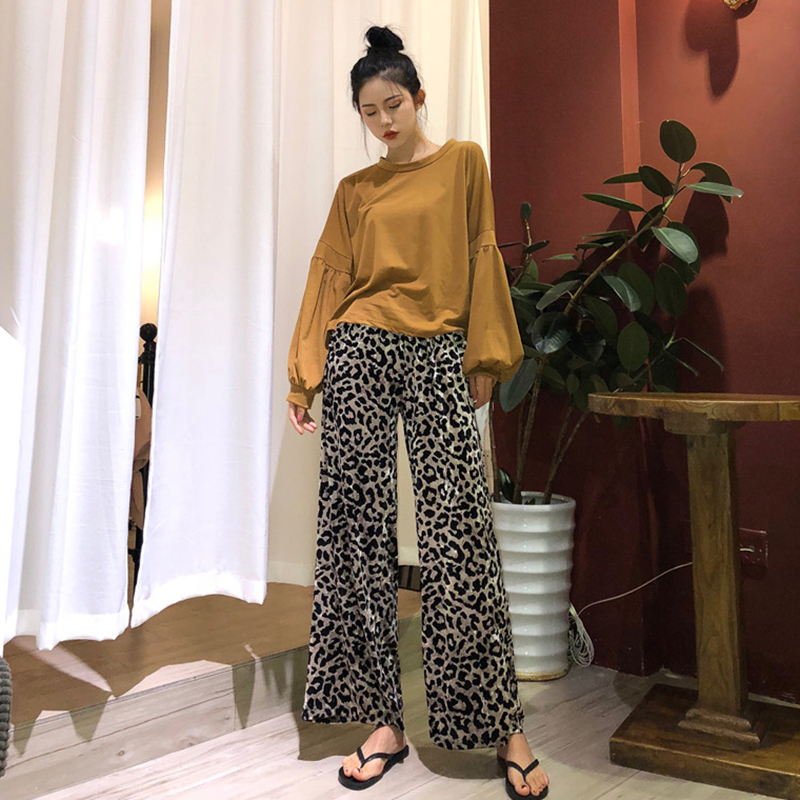 / 港味復古豹紋闊腿褲秋裝女2018新款高腰寬松直筒褲子洋氣休閑長褲