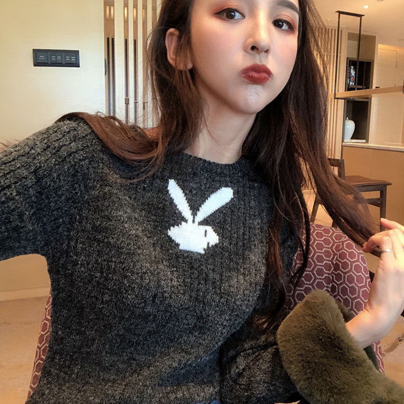 / 網紅毛衣女2018新款寬松慵懶小兔子短款長袖針織毛衣顯瘦新品上衣