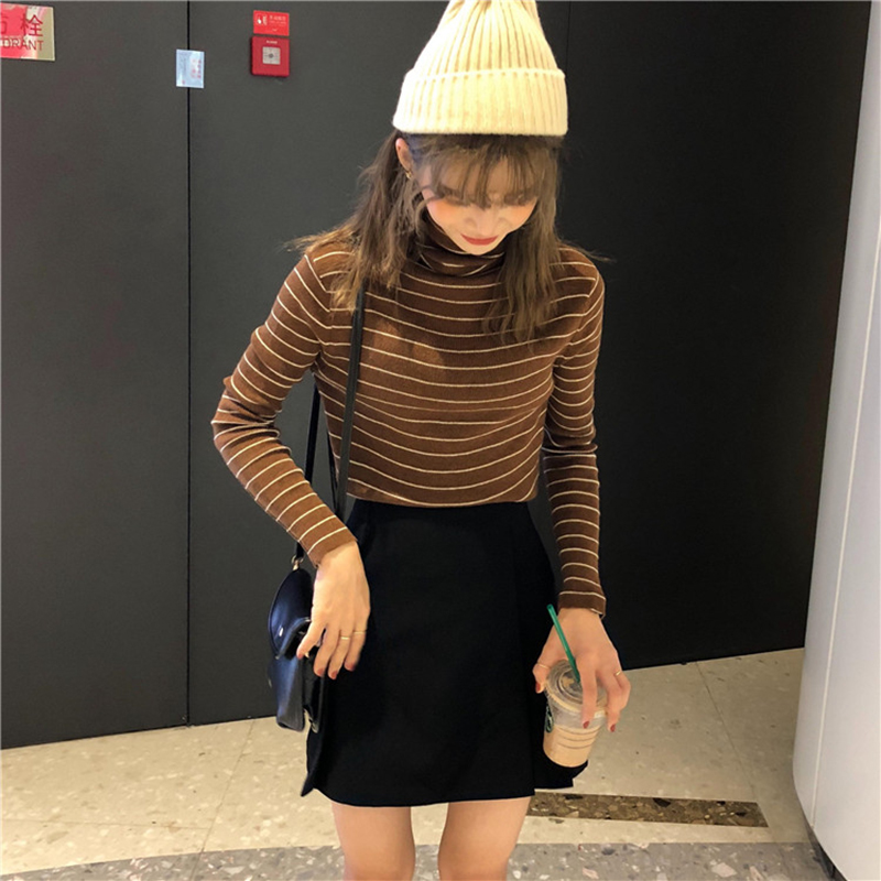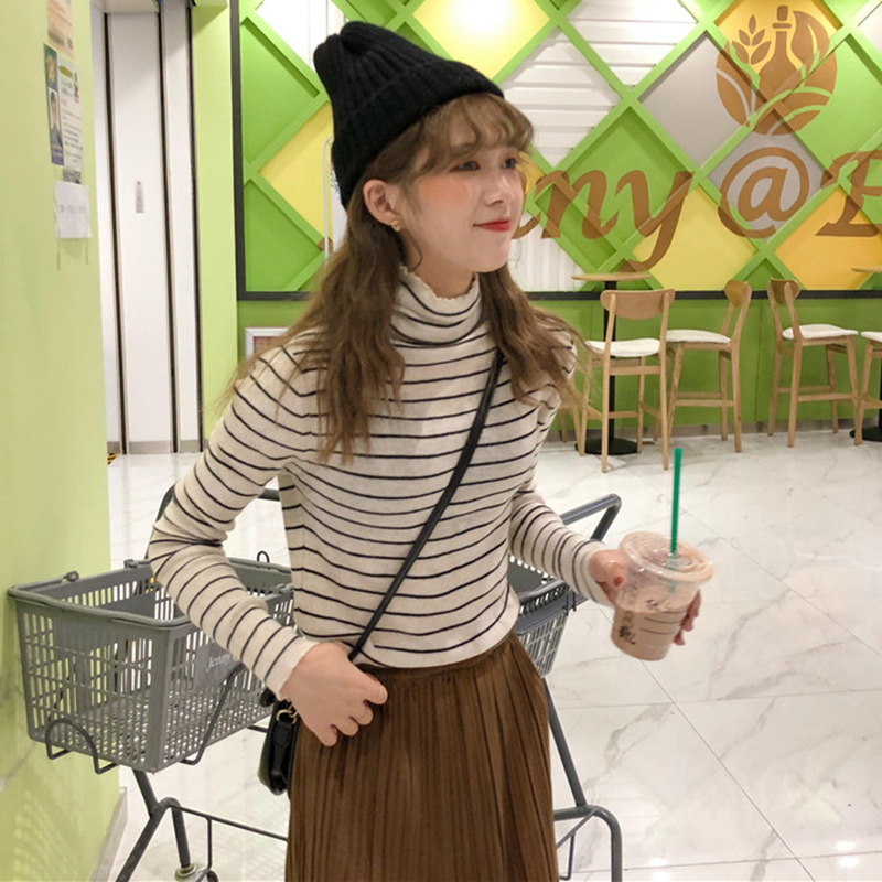 chic條紋高領長袖針織衫女秋冬裝2018新款韓版氣質修身打底薄毛衣