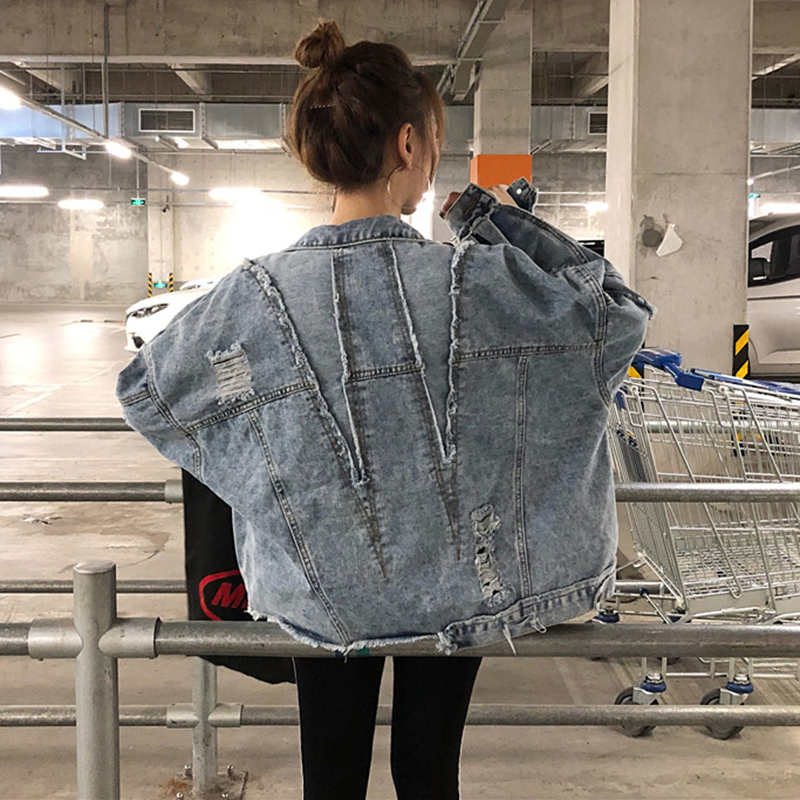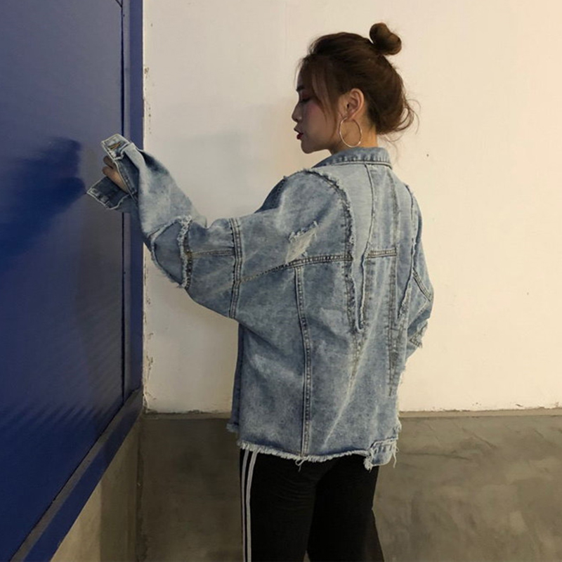 秋裝女2018新款時尚個性破洞毛邊不規則牛仔外套韓版學生潮流上衣
