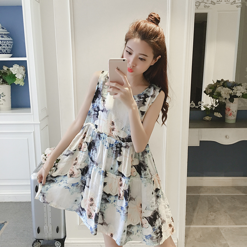 / 新款女裝復古印花背心裙子女夏季寬松顯瘦碎花無袖棉麻連衣裙