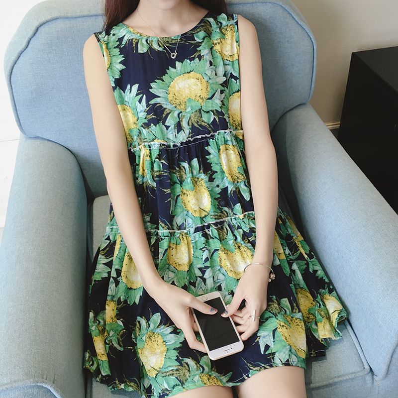 新款女裝復古印花背心裙子女夏季寬松顯瘦碎花無袖棉麻連衣裙