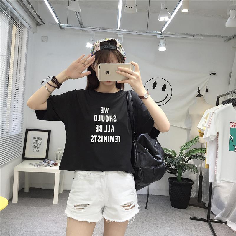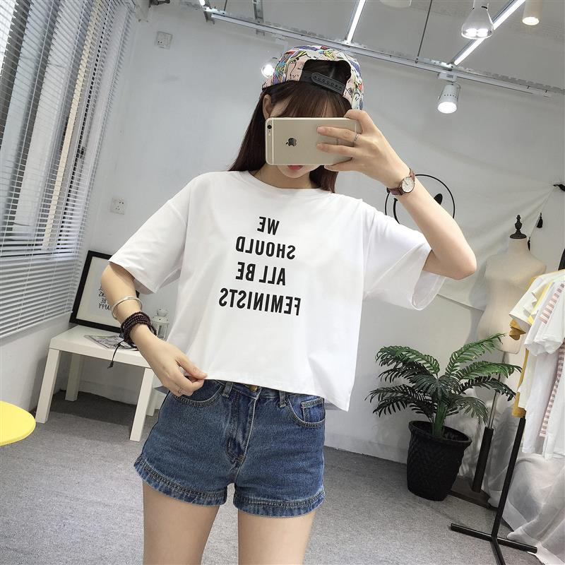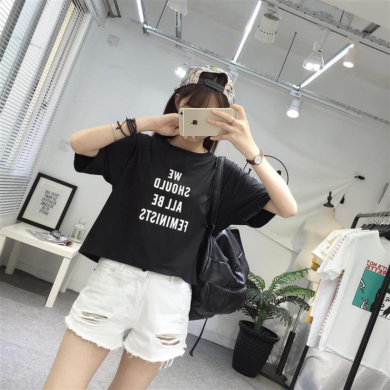早春新款女裝字母印花寬松顯瘦學生百搭短款短袖打底衫T恤上衣女