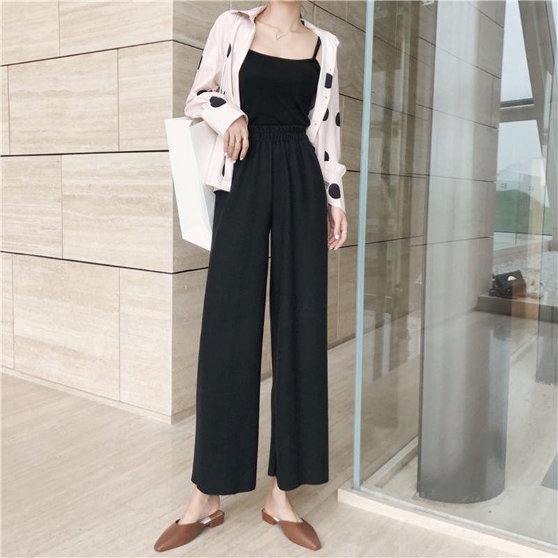 休閑褲女秋冬裝2018新款韓版氣質高腰闊腿褲學生寬松顯瘦長褲子潮