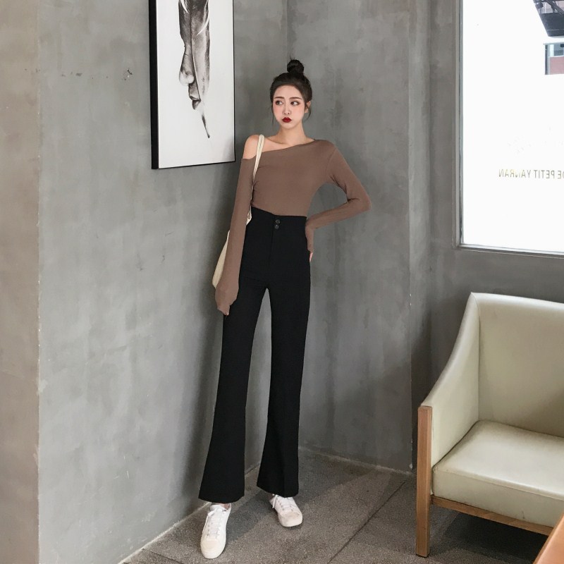 褲子女百搭2018顯瘦新款直筒小清新闊腿韓版復古chic高腰褲長褲潮