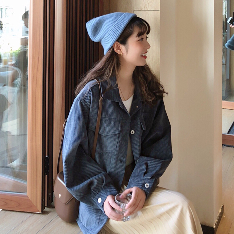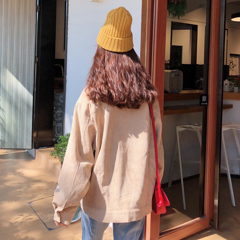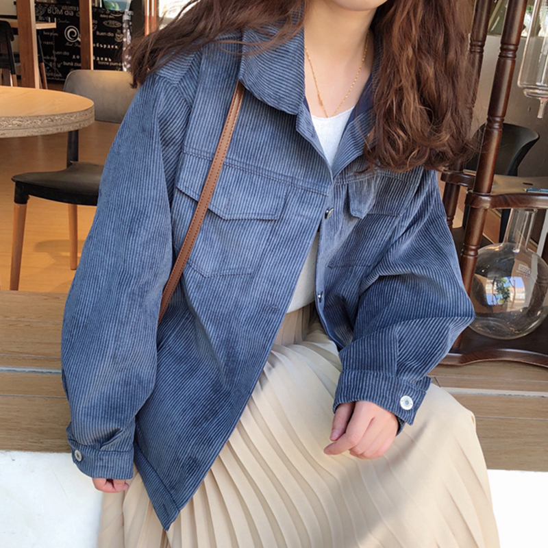 / 韓版復古風燈芯絨外套秋冬女裝2018新款學生翻領開衫休閑長袖上衣