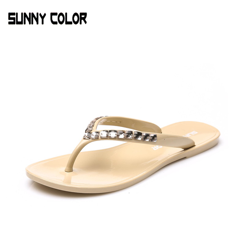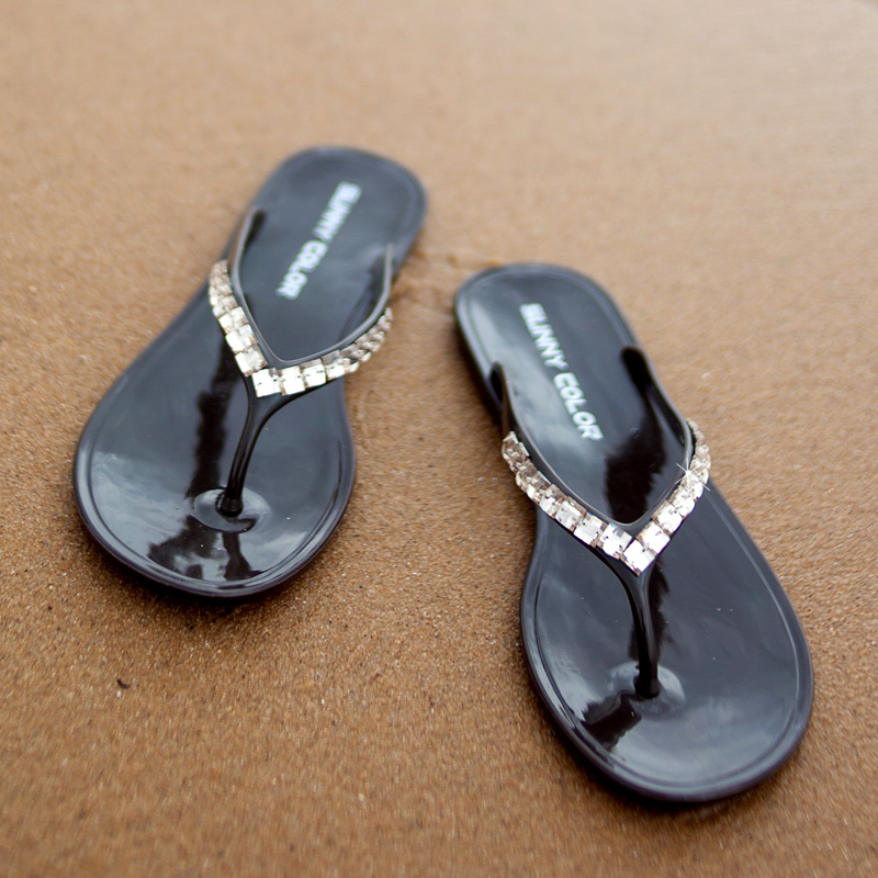/ 夏季夾腳平底人字拖女 防滑平跟水鉆沙灘鞋休閑涼拖鞋