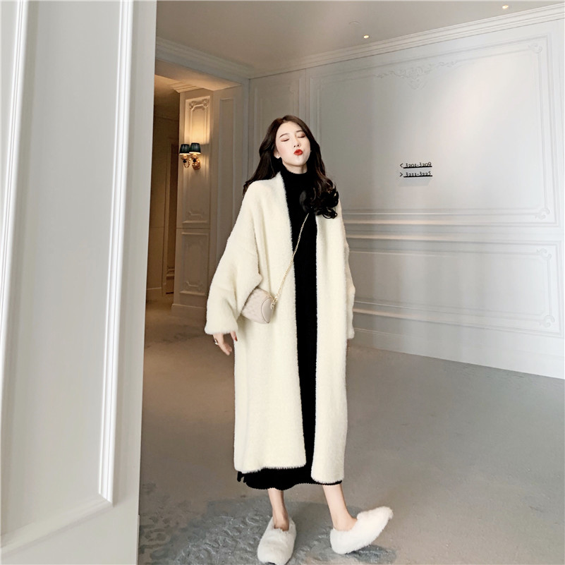 / 長款加厚蝙蝠袖寬松外套女秋冬2018新款加厚保暖氣質百搭開衫大衣