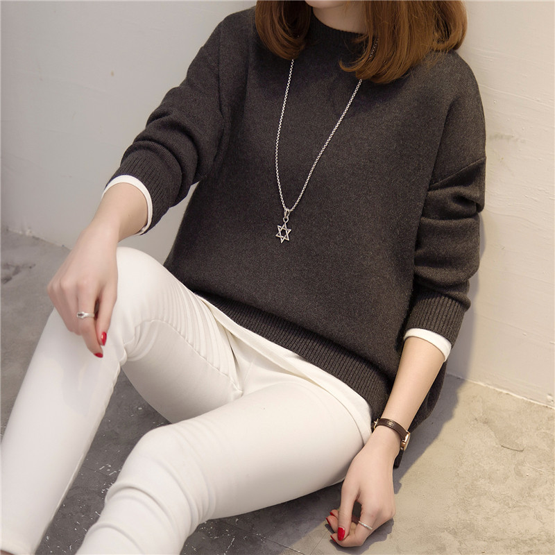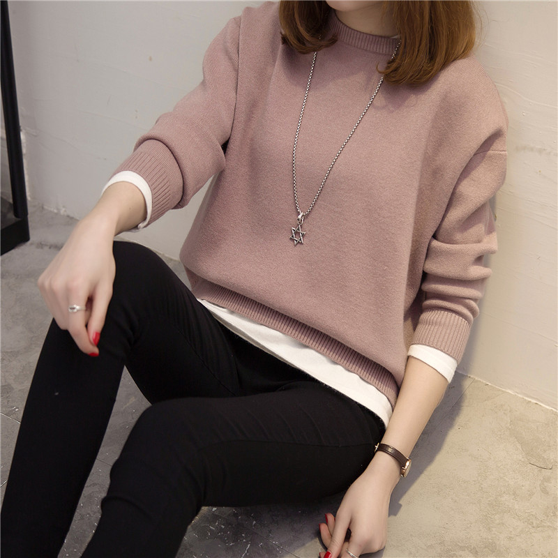 / 女裝春裝新款潮針織衫假兩件毛衣女秋冬套頭打底衫長袖外套女