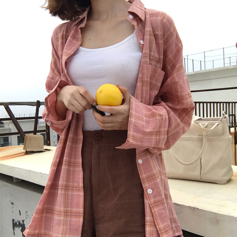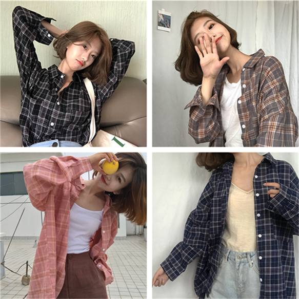 / 復古格紋襯衫女春秋新款韓版學生百搭寬松顯瘦休閑長袖開衫外套潮