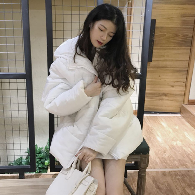 原宿風加厚棉服外套女冬裝2018新款韓版學生寬松長袖連帽面包服潮
