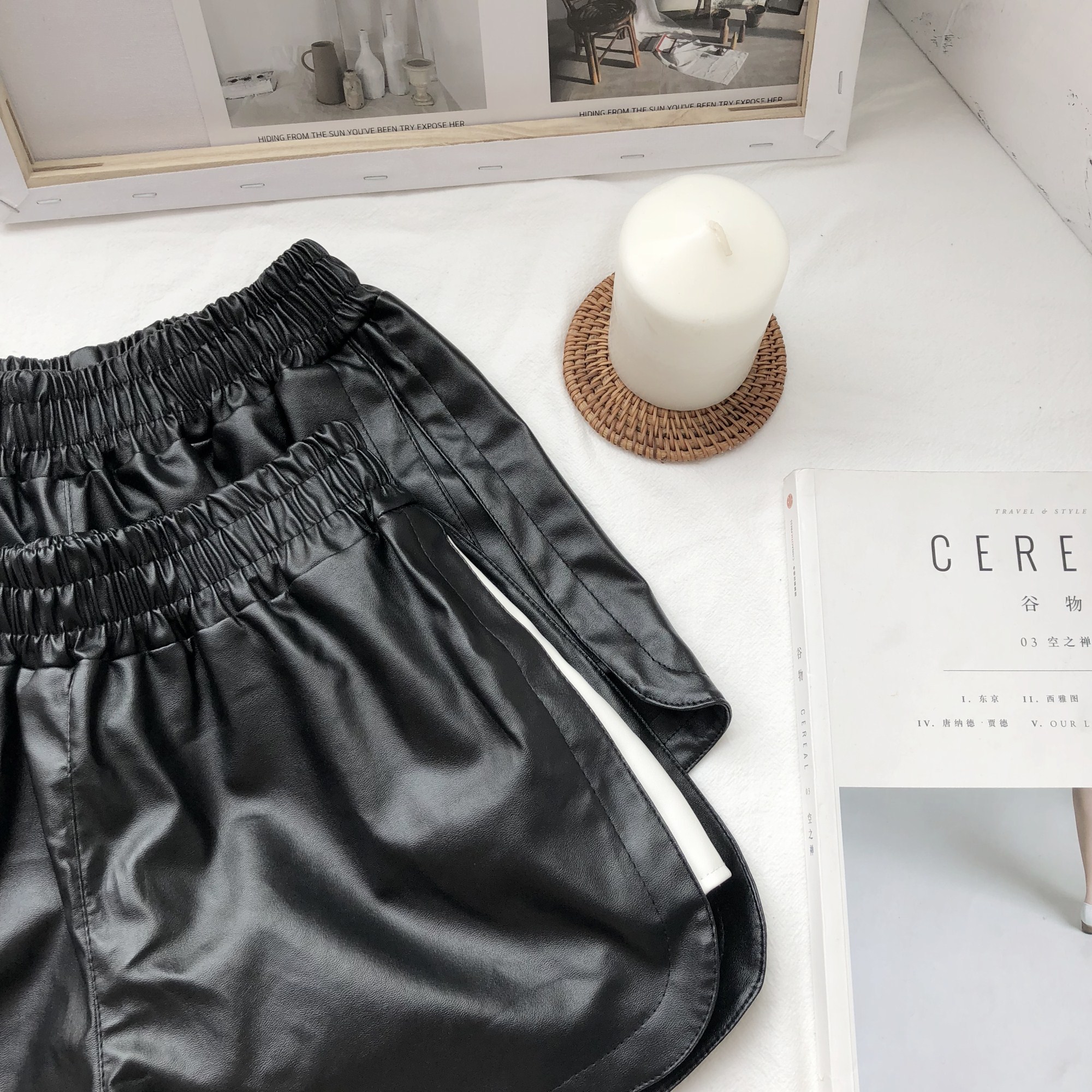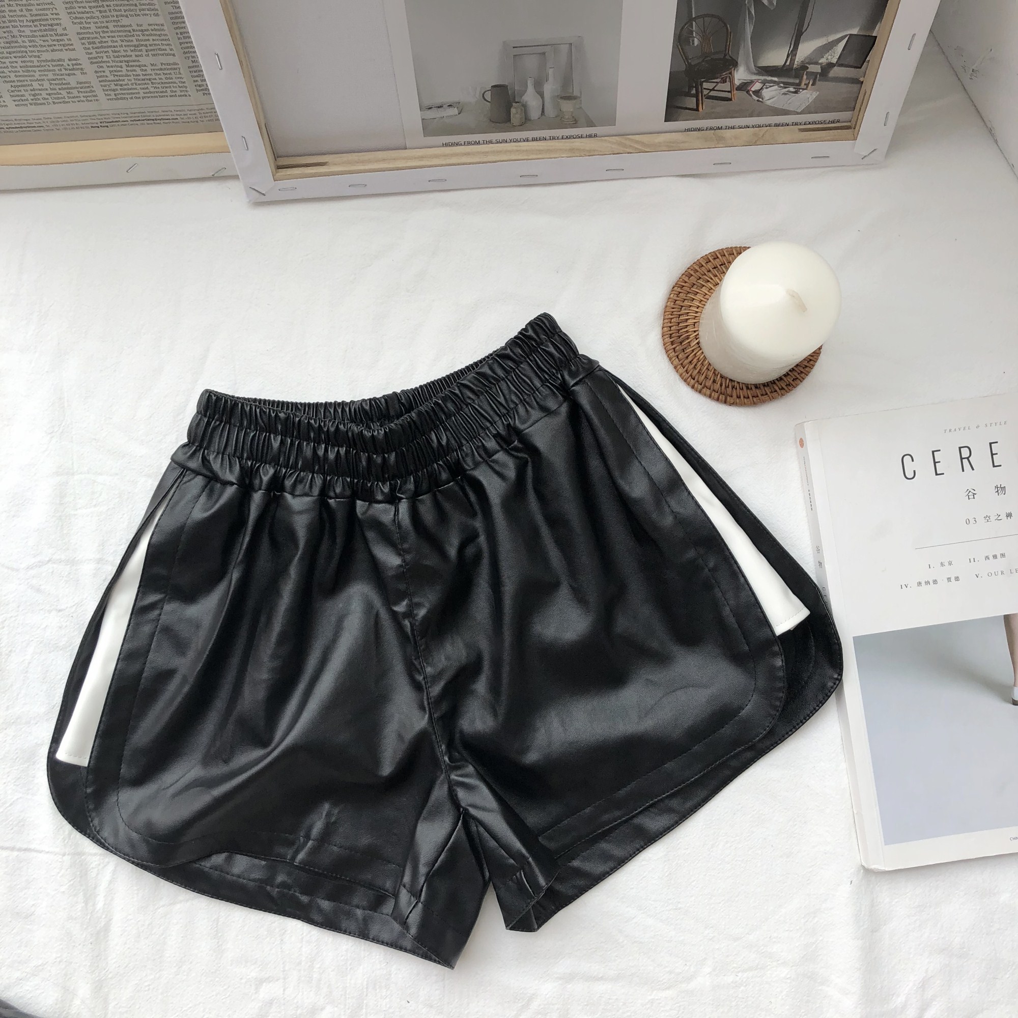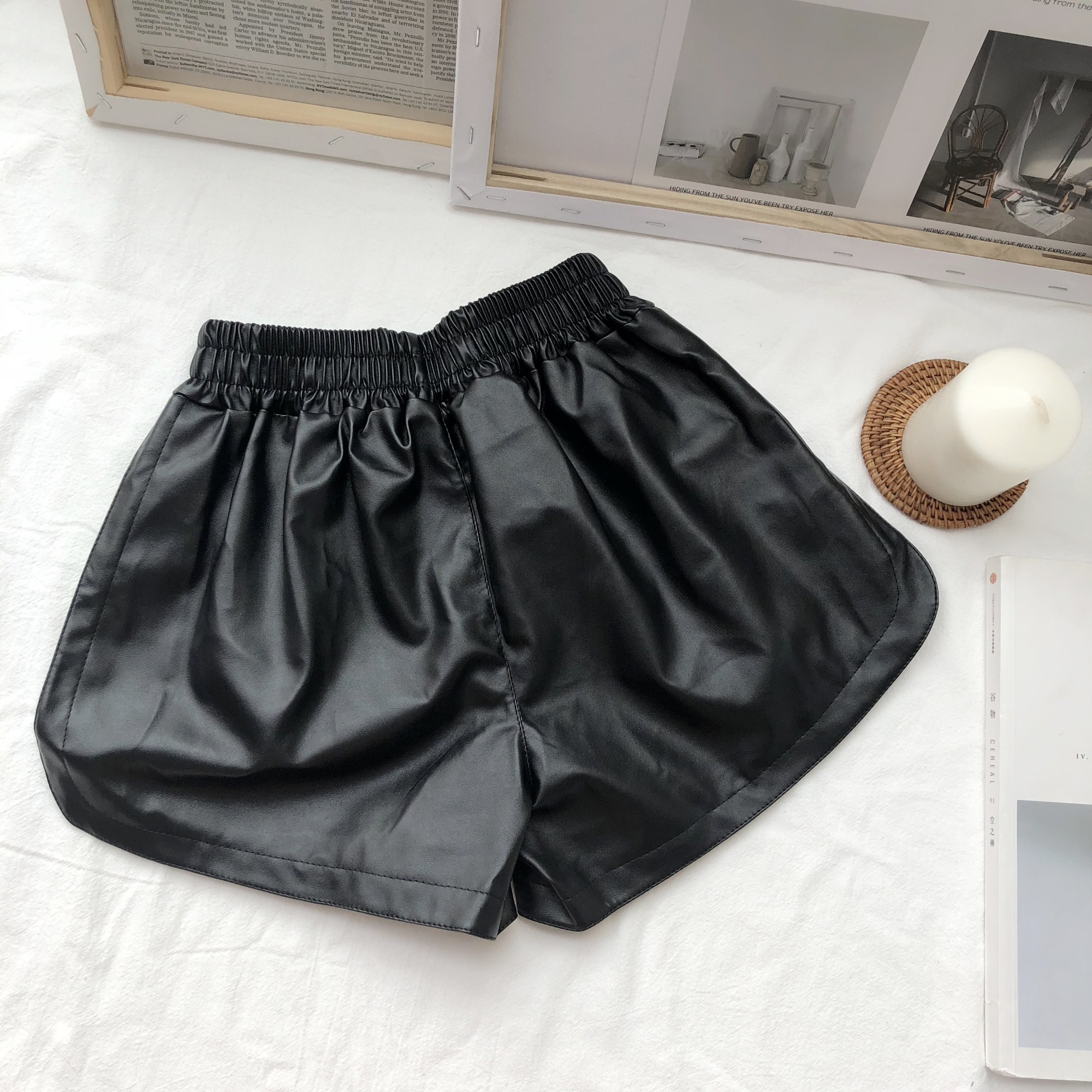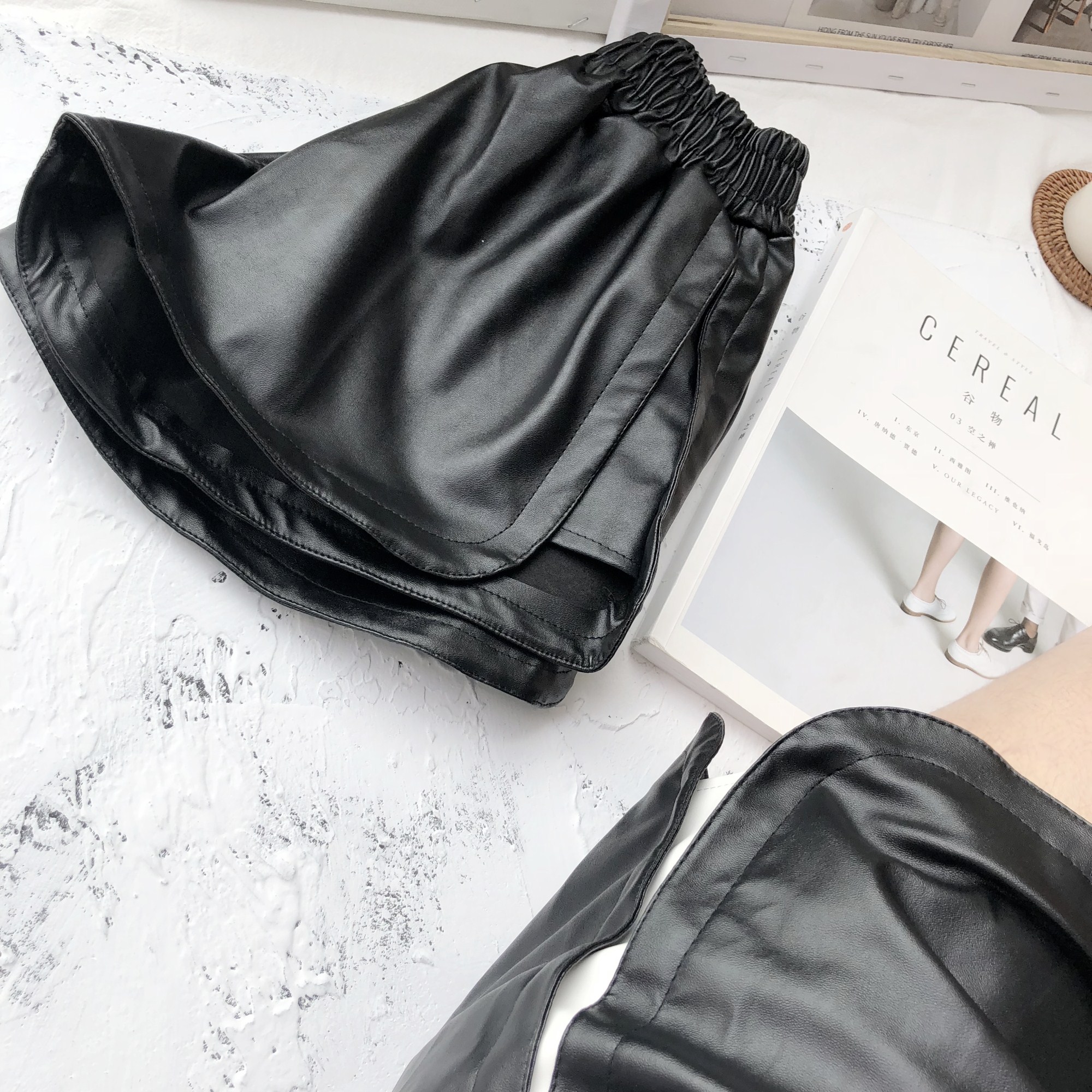 褲子新款韓版松緊腰外穿高腰寬松闊腿顯瘦百搭打底a字PU皮短褲女