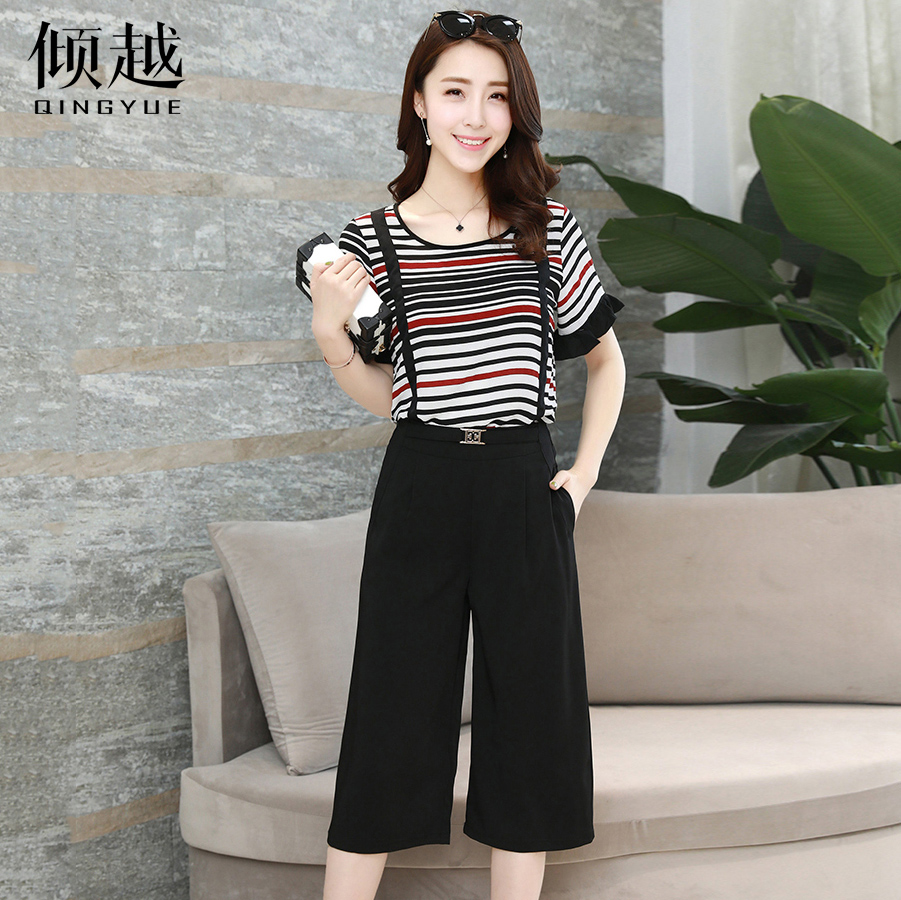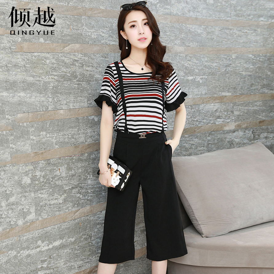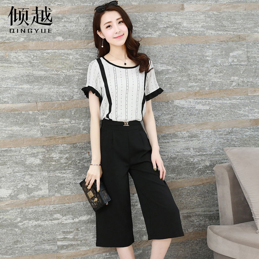 / 傾越2017夏季新款女裝氣質七分闊腿褲套裝小香風時尚休閑兩件套潮