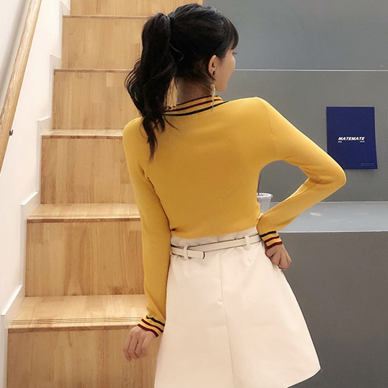 秋冬女裝2018新款韓版半高領木耳邊針織衫修身顯瘦外穿打底薄毛衣