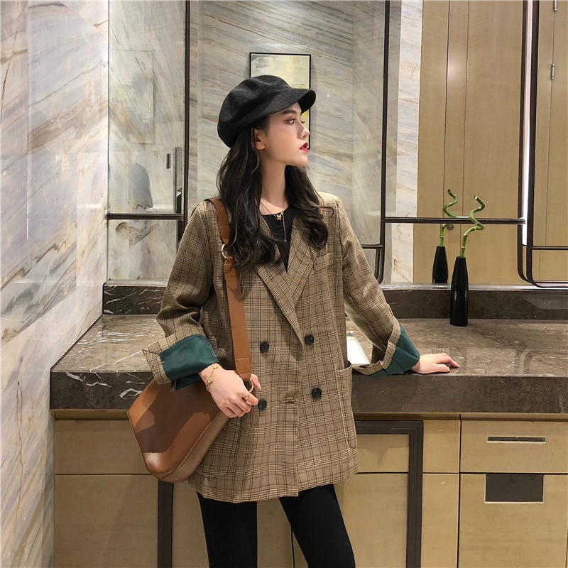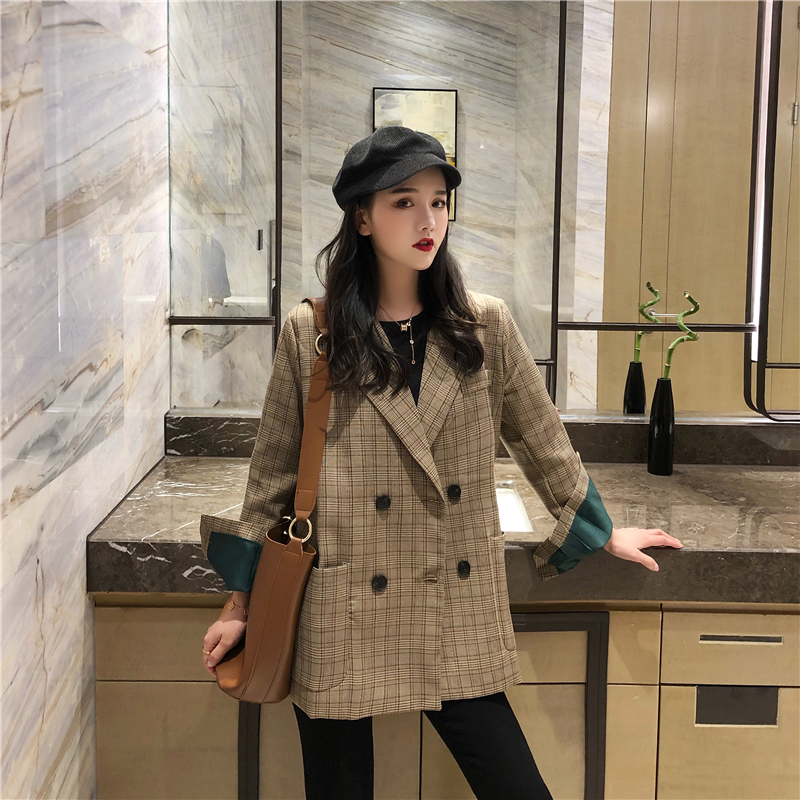 / 新款小香風秋季格紋西服學生寬松秋裝復古格子chic風小西裝外套女