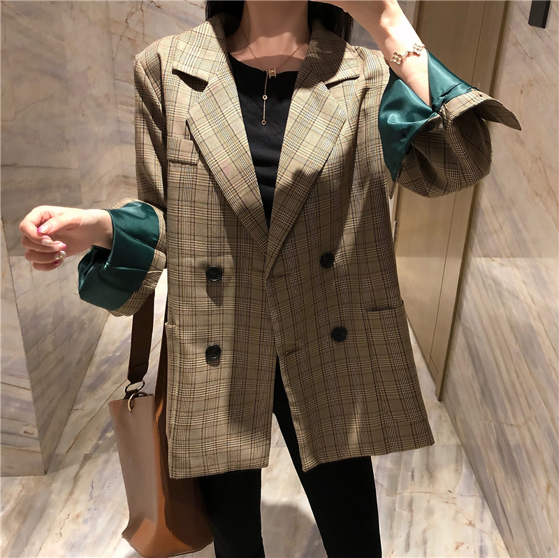 新款小香風秋季格紋西服學生寬松秋裝復古格子chic風小西裝外套女