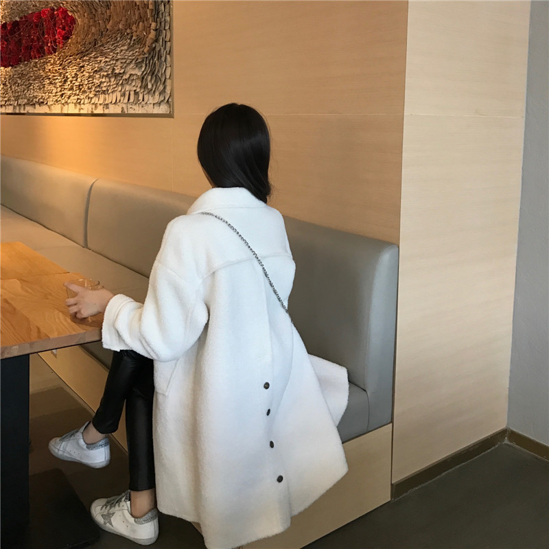 / chic港味2018秋冬新款保暖過膝毛呢外套女仿羊羔毛中長款大衣女潮