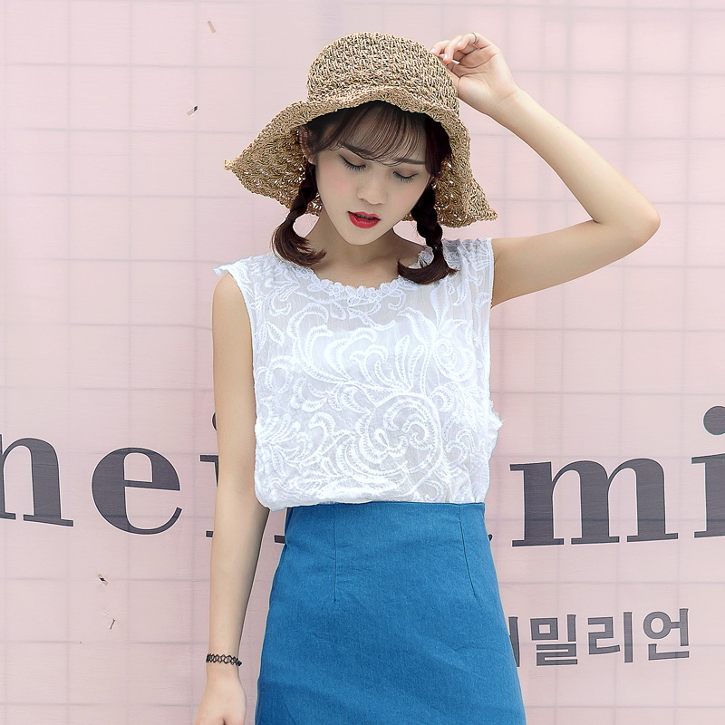 / 夏裝新款女裝韓版吊帶背心短款白色蕾絲打底衫外穿學生上衣潮
