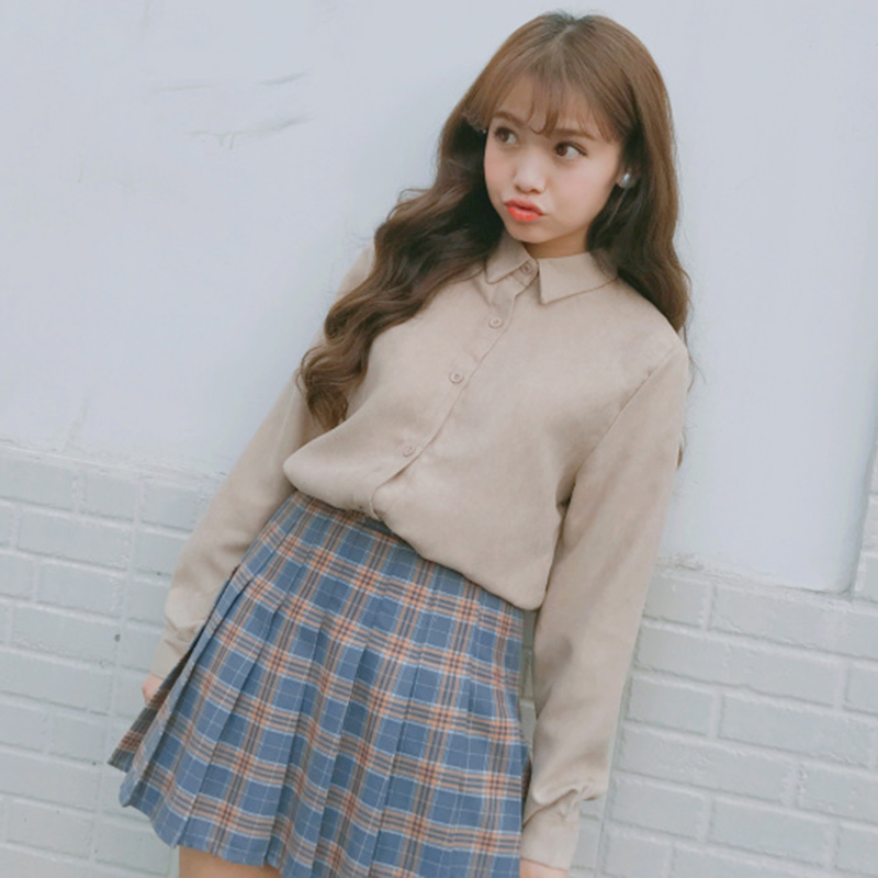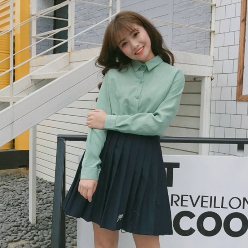 / 學院風長袖白襯衫秋裝女新款韓版學生清新上衣少女簡約修身打底衫