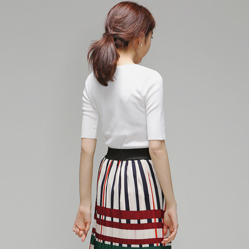 / 針織短袖女夏冰絲v領純色修身白色t恤女薄新款韓版百搭打底衫