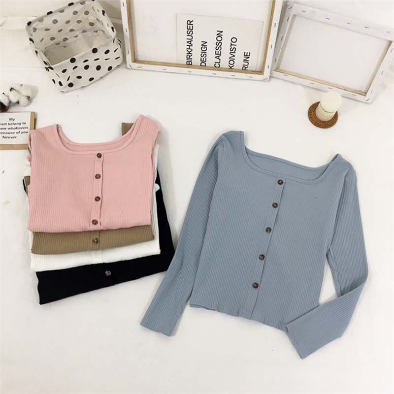 簡約純色方領套頭針織衫秋裝女2018新款港味修身毛衣學生長袖上衣