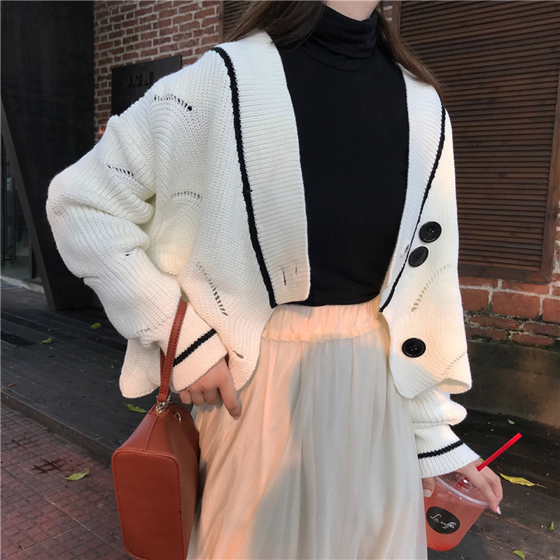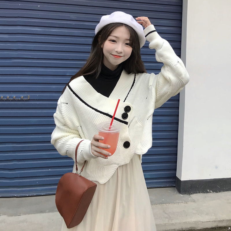 秋冬女裝2018新款韓版下擺不規則針織開衫時尚寬松鏤空毛衣短外套