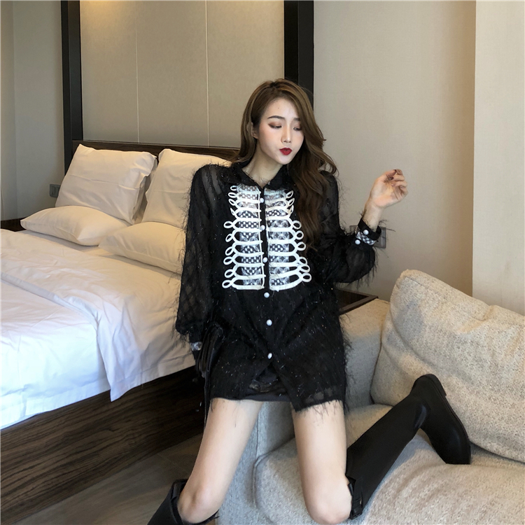 女神套裝新款襯衫蕾絲打底衫上衣+寬松顯瘦高腰絲絨半身裙女長裙