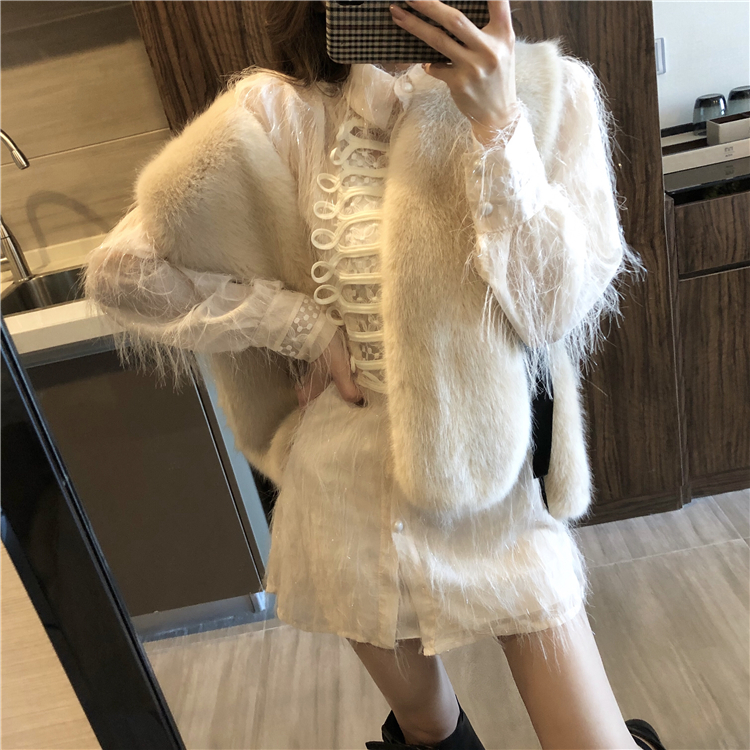 氣質修身襯衫韓版毛毛長袖百搭襯衣+網紅同款毛衣女外套開衫套裝