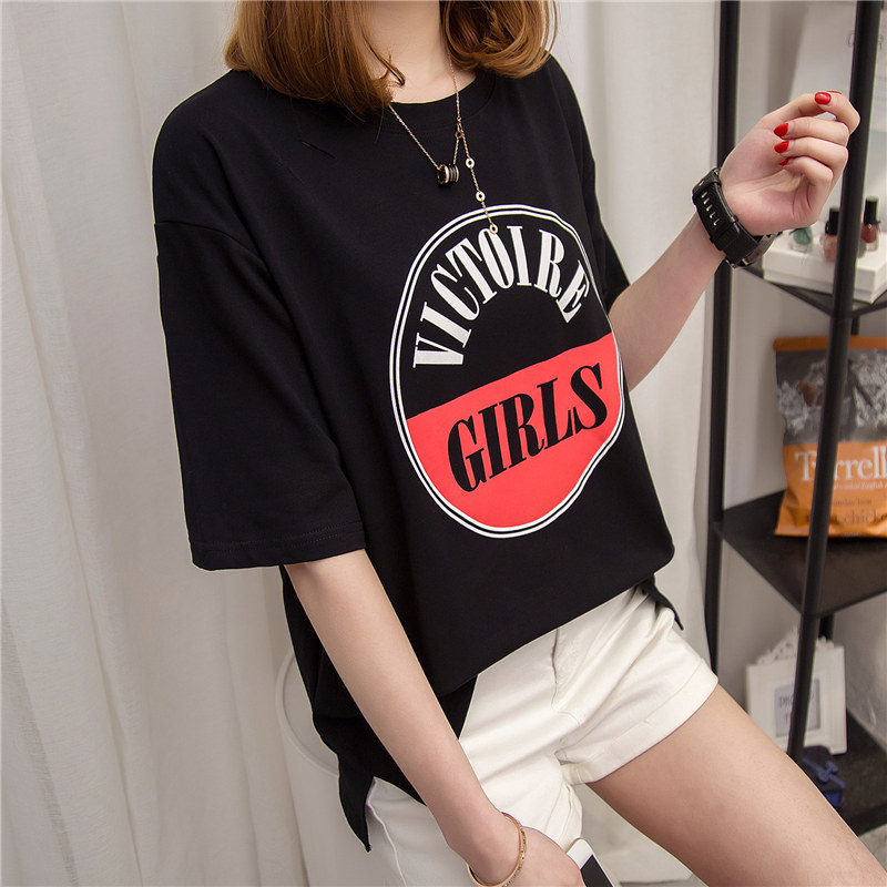 / 女裝春裝新款潮短袖t恤女寬松中袖韓版學生開叉夏季體恤百搭