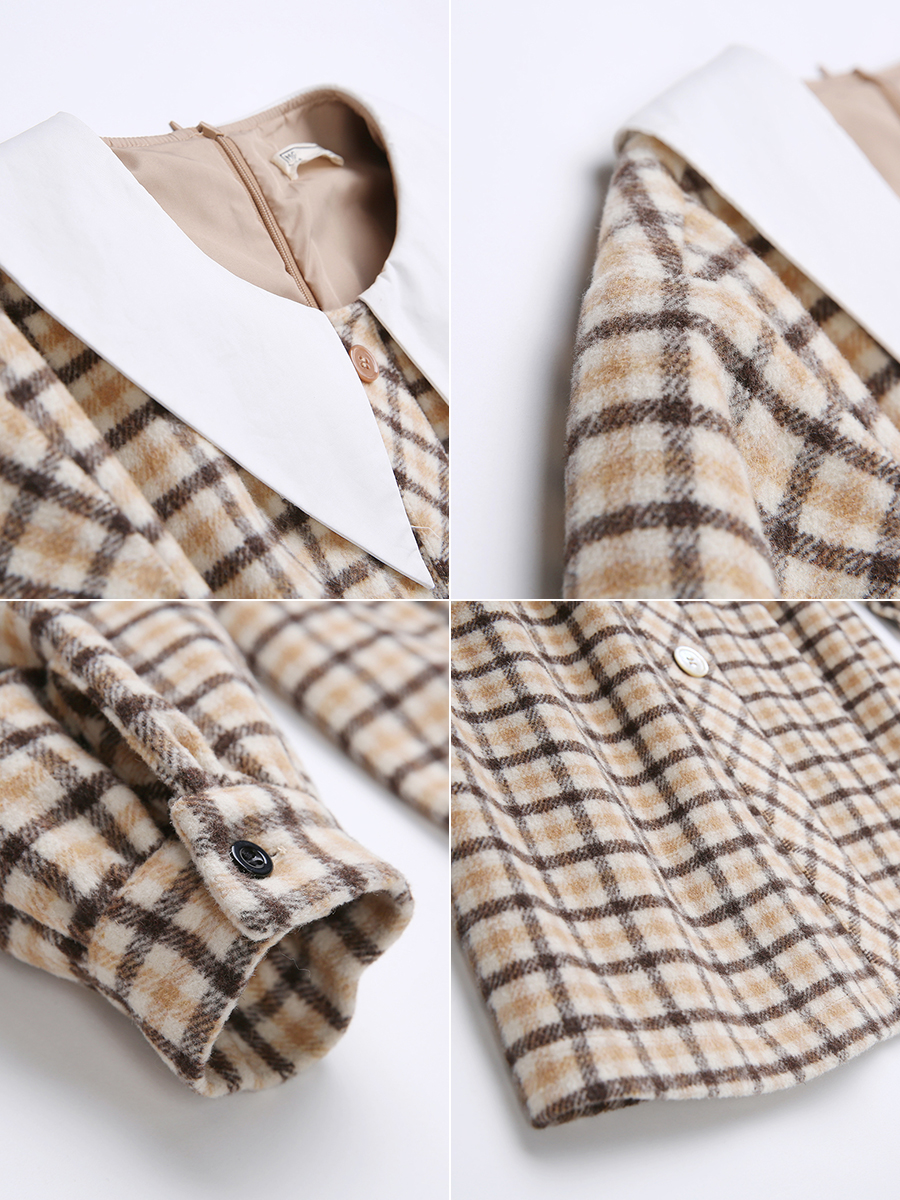 / MG小象長袖毛呢連衣裙女秋裝2018新款中長款學生收腰顯瘦格子裙子