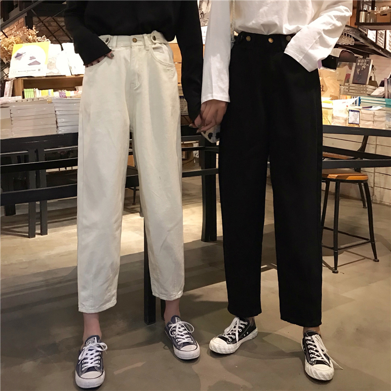 / 黑色牛仔褲女秋裝2018新款韓版寬松蘿卜哈倫褲子學生高腰直筒長褲