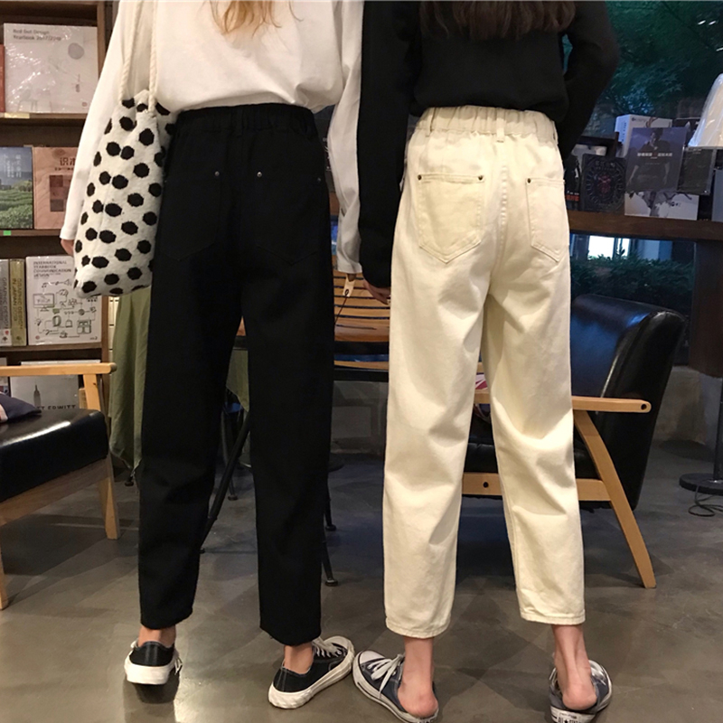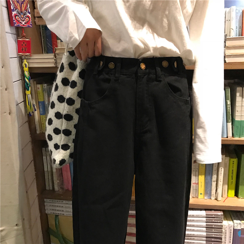 黑色牛仔褲女秋裝2018新款韓版寬松蘿卜哈倫褲子學生高腰直筒長褲