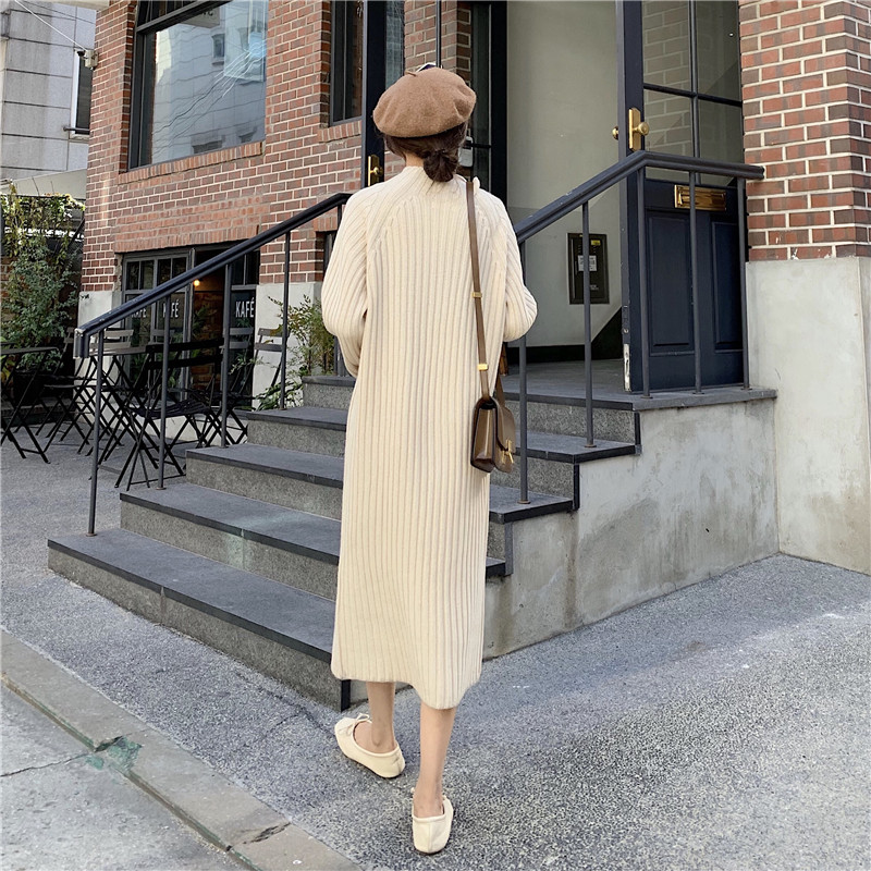 初冬溫柔風毛衣裙女冬裝2018新款女中長款寬松連衣裙女(配圍巾)