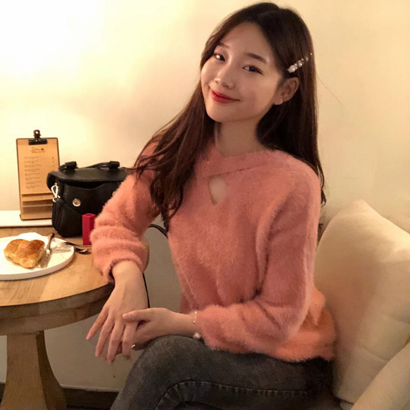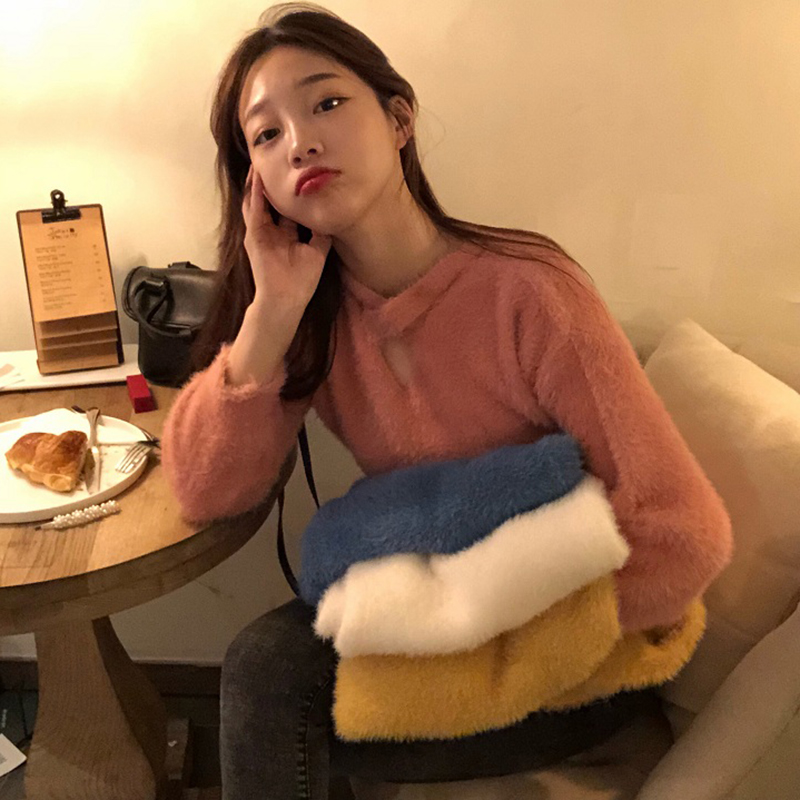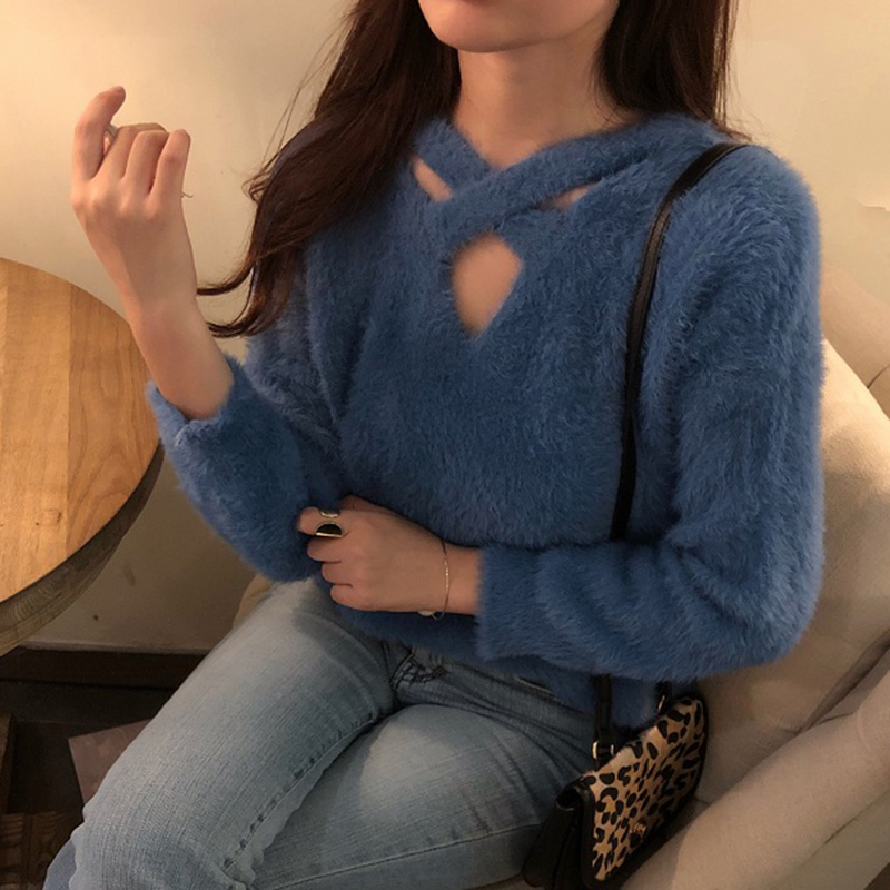/ 糖果色交叉V領毛衣女秋冬裝2018新款修身針織打底衫外穿套頭上衣