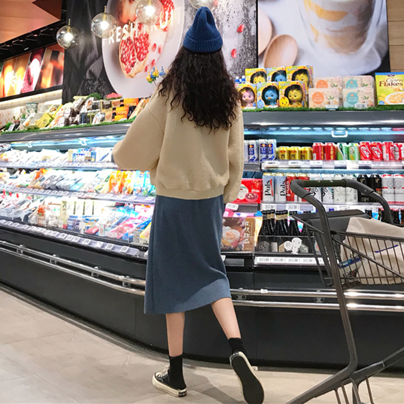 / 洋氣套裝女秋冬新款韓版毛衣拼接仿羊羔毛衛衣外套加高腰半身裙子