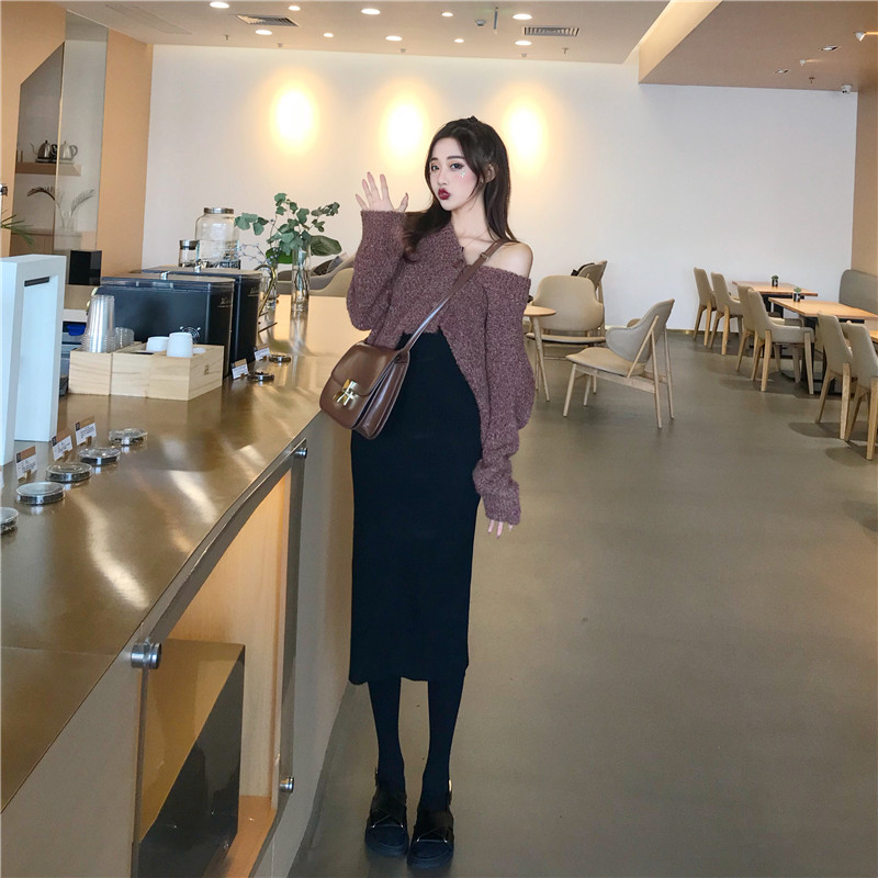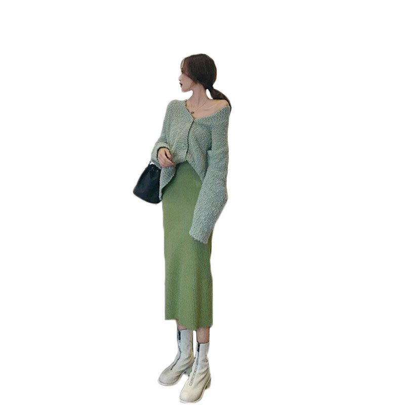 搭配的也是同色系的曲珠針織裙 中長款高腰設計 整整拉高了比例~