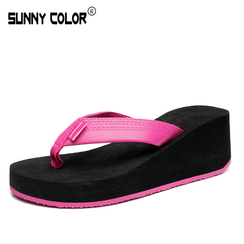 / 夏季厚底坡跟人字拖松糕跟沙灘鞋涼鞋休閑拖鞋女