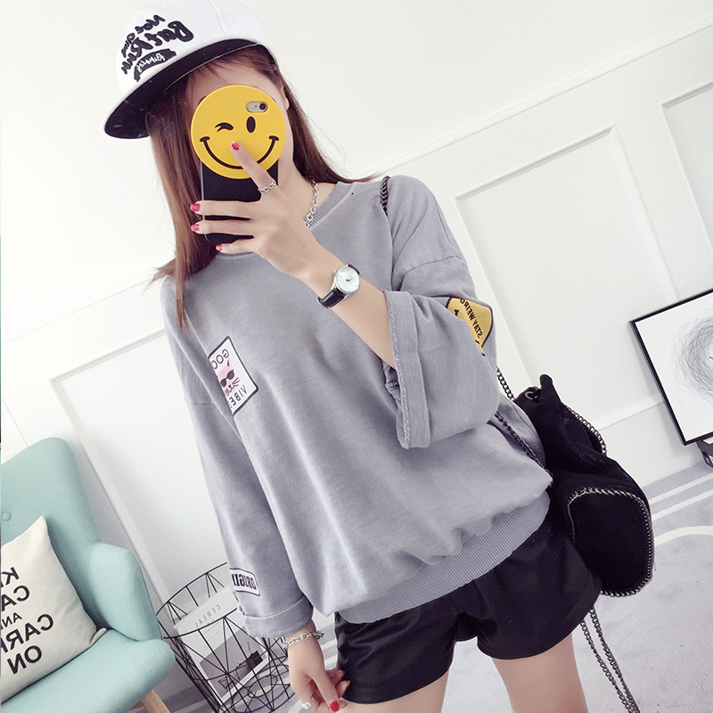 / 春裝新款韓版潮學生百搭寬松印花T恤女裝七分袖上衣小衫體恤